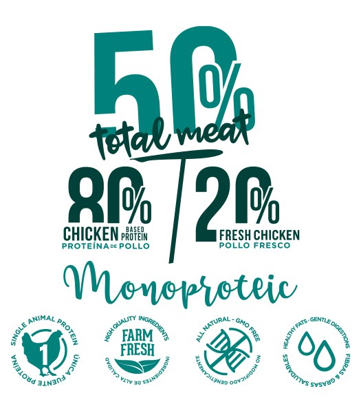 Al igual que ocurre con el resto de recetas Fresh Mediterranean Blend, se trata de un pienso hipoalergénico y monoproteico que propicia mejores digestiones a la vez que mima el paladar de tu perro.