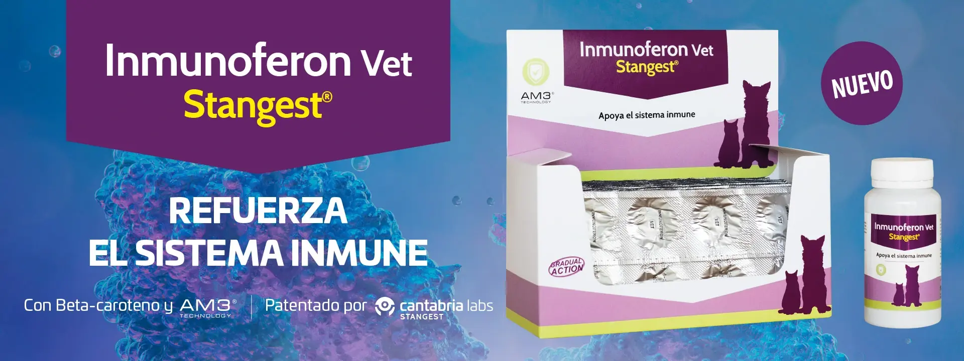 Inmunoferon Vet es un suplemento nutricional inmunomodulador para perros y gatos que favorece una acción eficaz y equilibrada del sistema inmune. Gracias a su fórmula exclusiva basada en la Tecnología de Cantabria Labs, AM3, junto con el Beta-caroteno, Quinoa B-Complex, Equinácea, minerales y aminoácidos, es capaz de modular las diferentes vías inmunitarias y coordinar su acción, ayudando a que el sistema inmune esté a punto para desarrollar una respuesta eficaz, equilibrada y adecuada a cada situación.