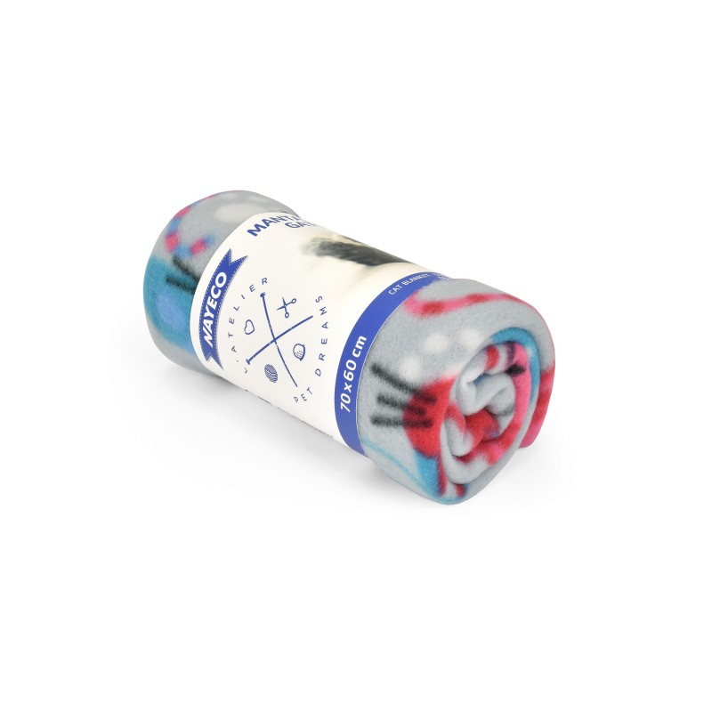 Con unas dimensiones de 60x70cm, esta manta de color gris está adornada con adorables gatitos en tonos azules y rojos. Lo más destacado de esta manta es su suavidad inigualable, que proporcionará a tu gato la máxima comodidad y calidez.