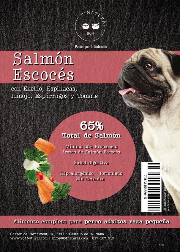 InicioTiendaPiensos Naturales PerrosPerro Adulto – Raza Pequeña – Salmón Escocés con Eneldo, Espinacas, Hinojo, Espárragos y Tomate.